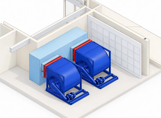 Sistemas de ventilação projetados para garantir qualidade do ar e circulação adequada em ambientes fechados.